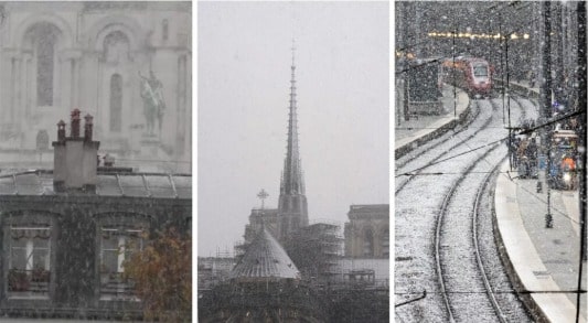 París vivió este sábado una intensa jornada invernal marcada por nevadas persistentes que comenzaron a cubrir de blanco las calles, plazas y parques de la capital francesa, mientras la temperatura se mantuvo en 0 °C. Desde primeras horas de la tarde, la nieve arreció con fuerza y continuó durante la noche, dejando una fina pero uniforme capa sobre aceras, vehículos y zonas verdes.
